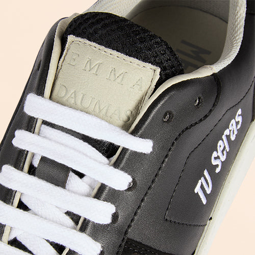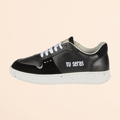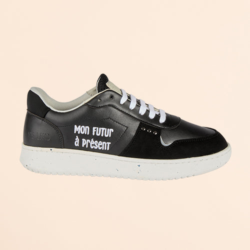 Cette basket fait partie de la Collection Tu seras et est pensée pour porter un message fort et poétique. Tu seras brodé sur le pied gauche et mon futur à présent brodé sur le pied droit comme une déclaration d’amour à chaque pas, à offrir ou à arborer fièrement. Sa forme confortable et son style urbain en font une pièce unique à porter au quotidien. Une basket unisexe, éco-responsable, recyclée, labelisée, pour un look simple et porteur de sens.