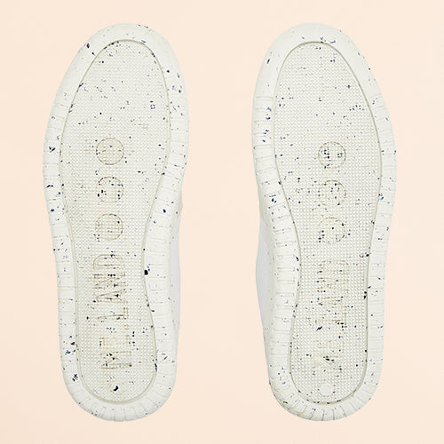 - Semelle en gomme recyclée blanche avec fragments de bouchons en PET.
